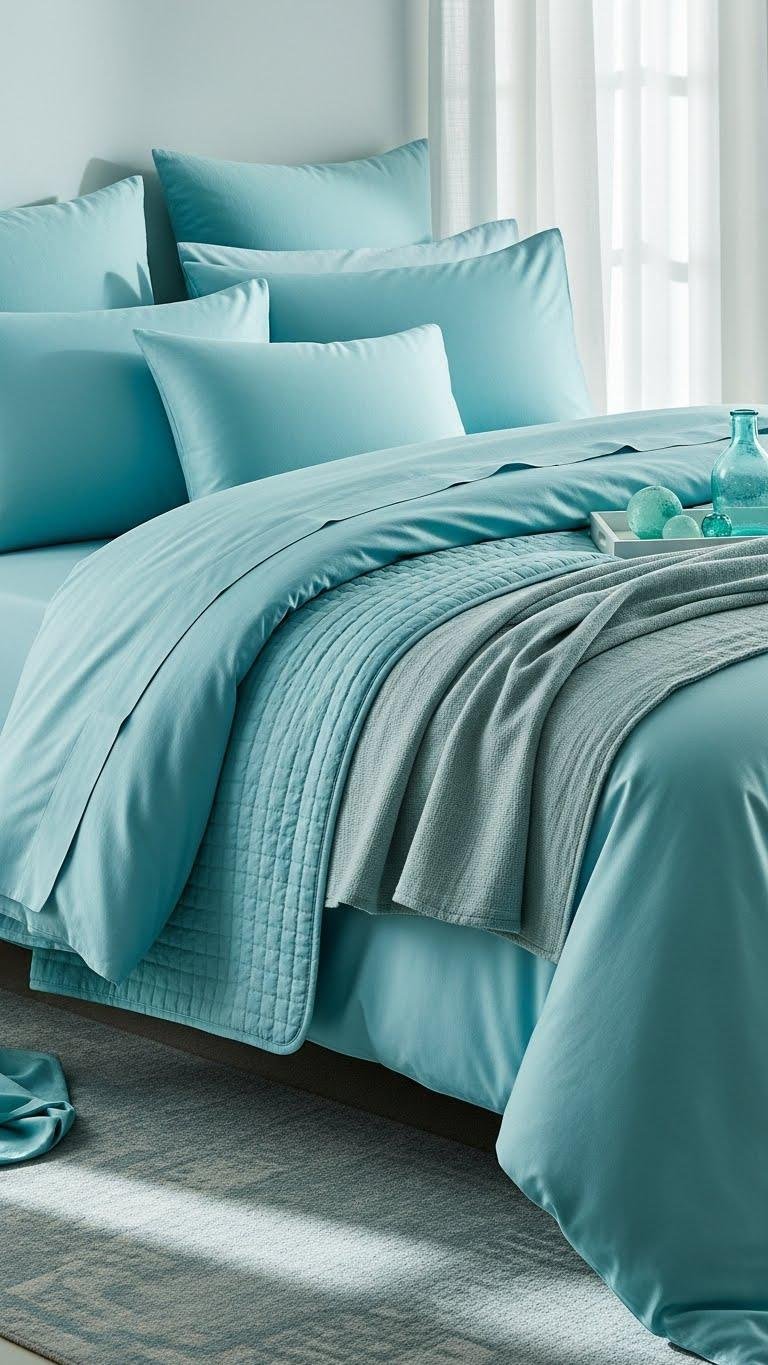 Layered Turquoise Bedding for Depth and Calm