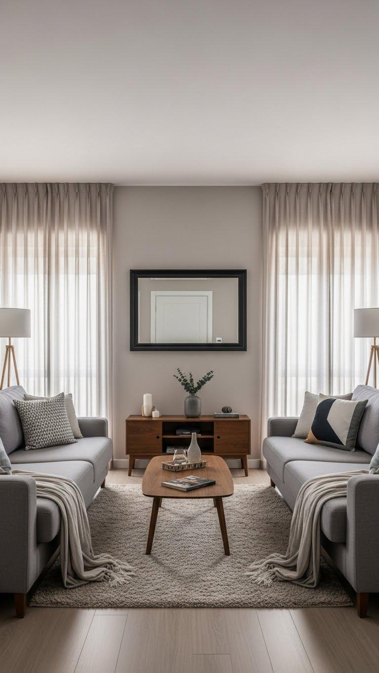 Although symmetry feels inherently orderly, you’ll want to keep it fresh by pairing measured balance with subtle, modern patterns that soften formality without losing polish.