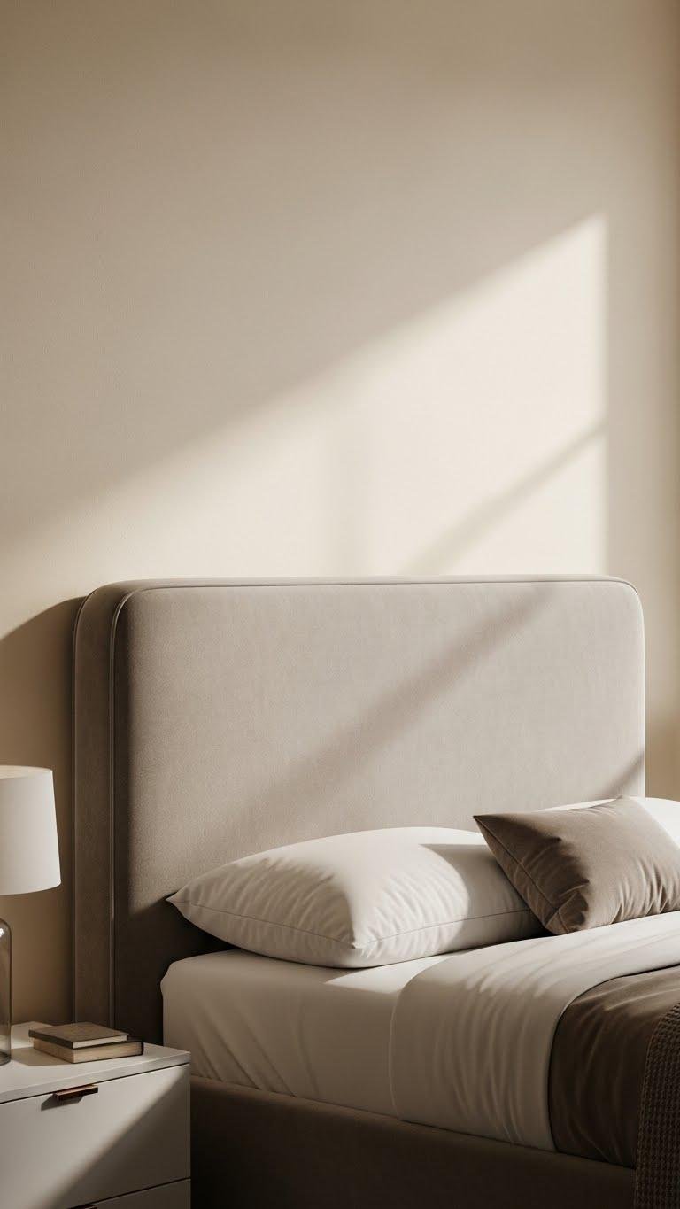 If the mirrored tufting felt glamorous, a soft upholstered headboard brings that same sense of polish into everyday comfort—you get refined style that’s actually livable. Choose velvet texture for tactile luxury, a rounded silhouette to soften the room, and neutral piping for subtle definition. A low profile keeps the look relaxed and freeing, so your bedroom feels elegant without fuss.