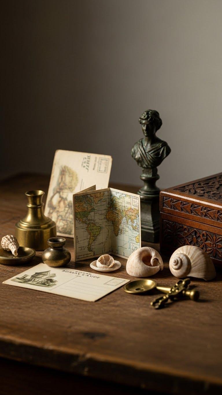 Move from the soft, layered textiles to a tabletop that tells stories: you’ll curate a curiosity cabinet–style array of travel finds that feels collected, not cluttered. Arrange global curiosities—small maps, shells, brass trinkets—and vintage artifacts like carved boxes or faded postcards. Mix heights, negative space, and a single sculptural anchor so each piece breathes, inviting discovery and effortless, free-spirited style.