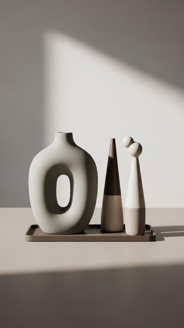 Position matte vases asymmetrically, letting negative space breathe — it feels curated, modern, and free.