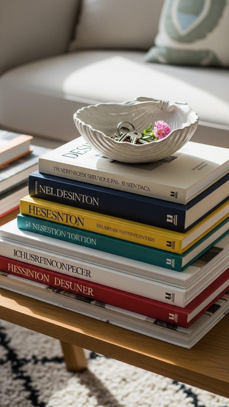 With a tidy stack of well-loved paperbacks and design tomes, you can anchor a coffee table and add instant personality without overwhelming the surface.