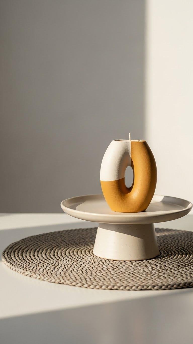 After softening the table with a woven mat, lift a small grouping by placing one object on a low pedestal or cake stand to create a focused focal point. You’ll choose a mini pedestal or vintage dessert stand centerpiece to elevate a sculptural candle, small vase, or art object. Keep lines clean, colors intentional, and let the piece breathe for a liberated, modern look.