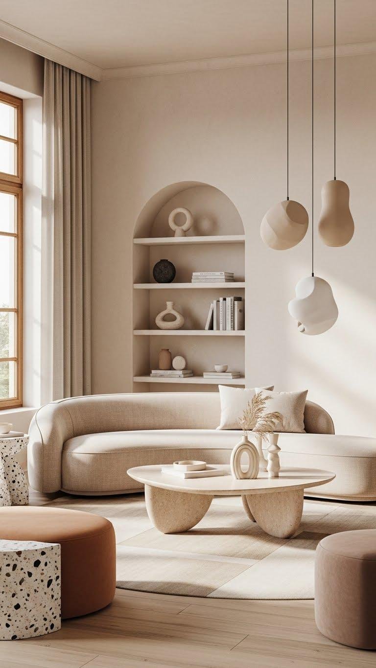 Embrace curved terrazzo accents, organic ottomans, and fluid lighting to invite movement and calm; choose pieces that let you live freely, mix textures, and celebrate relaxed sophistication.