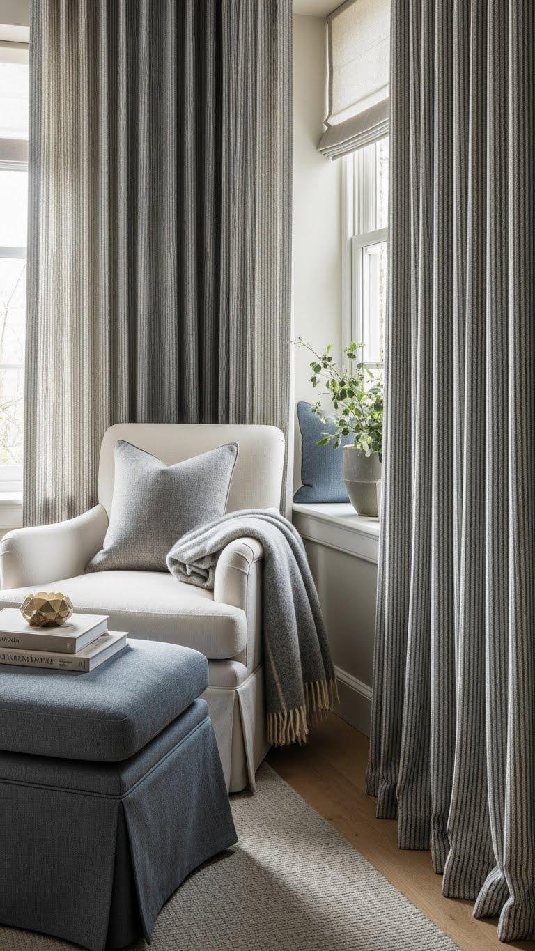 When you want a snug, layered nook, pleated curtains and tailored skirting give instant polish and warmth—pleats add texture and vertical rhythm while skirting hides storage and grounds furniture.