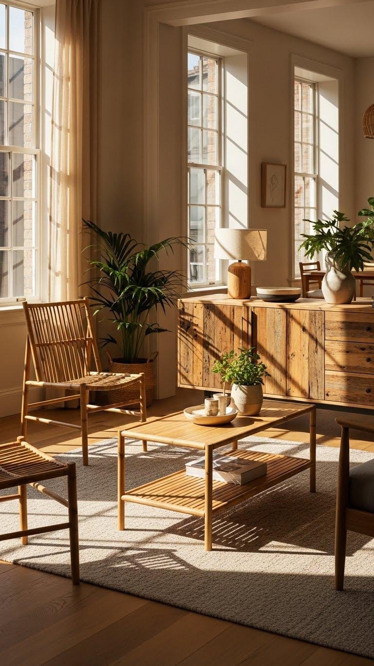 Embracing bamboo and reclaimed wood brings instant character to your apartment while cutting environmental impact—bamboo’s fast growth and reclaimed timber’s rescued history both make smart material choices.