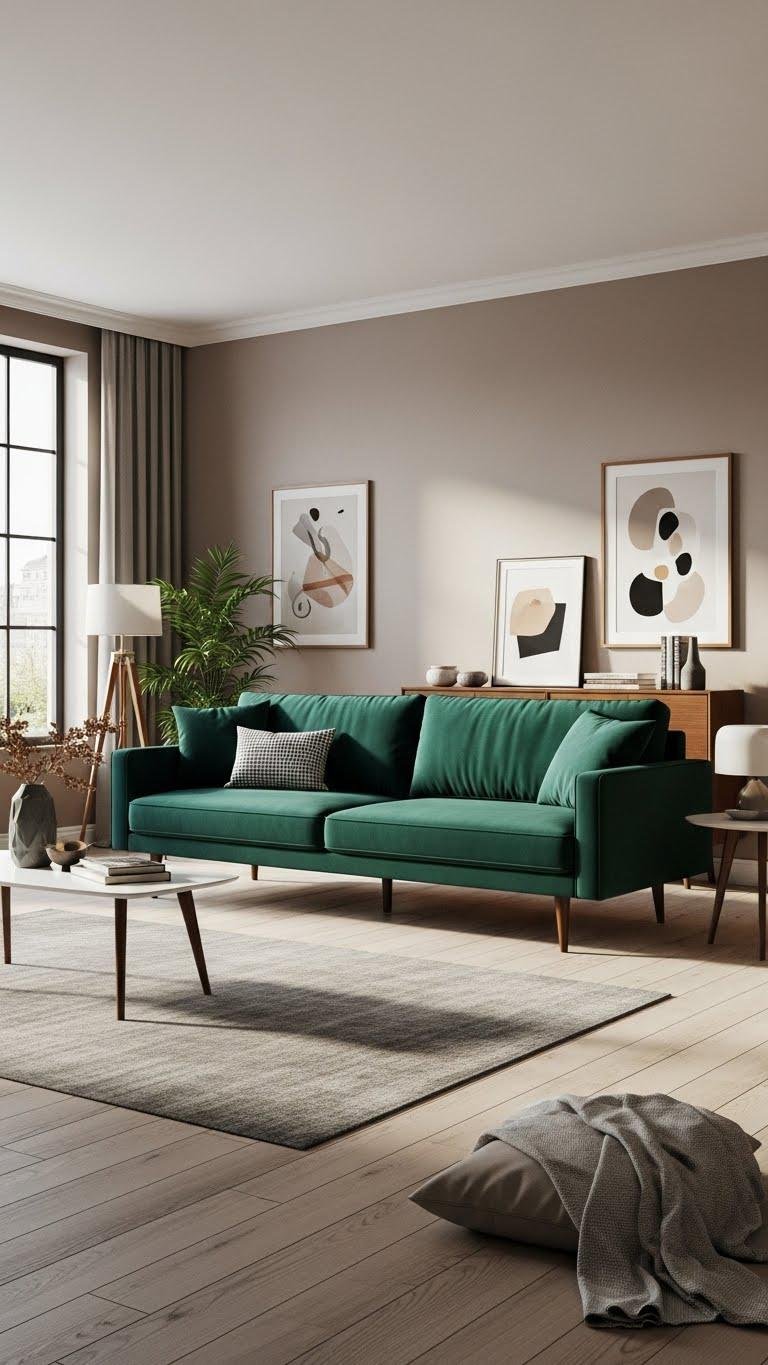 You’ve set a cohesive color story with one dominant hue; now let that foundation support a showstopping piece: a jewel-toned sofa. Choose a mid century silhouette for timeless edge, pick a jewel sofa in emerald or sapphire, and let it anchor a maximalist scheme without chaos. Keep surrounding pieces restrained to amplify tonal contrast and let your freedom-forward personality shine.