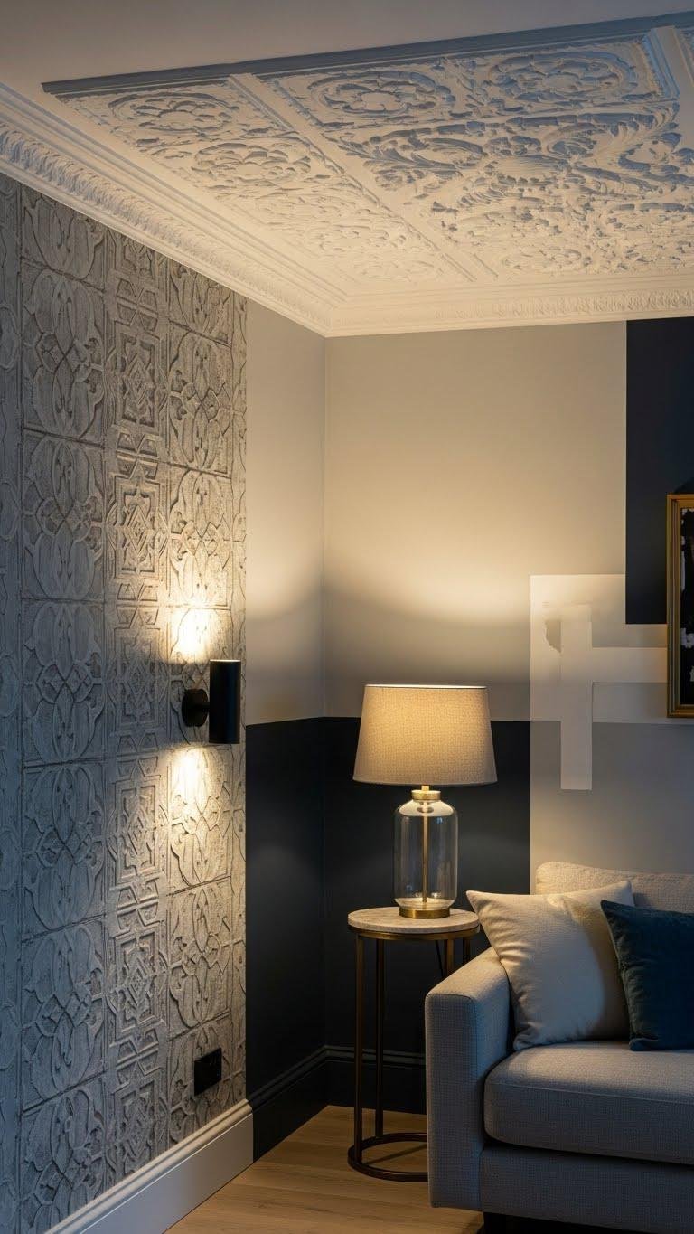 Choose tactile wallpaper for bold pattern depth, or commission plaster reliefs to sculpt light and shadow.