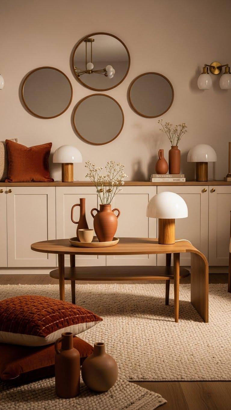 Frequently, you’ll get the biggest visual payoff by repeating a single shape or color across a room—think a trio of rounded mirrors, a series of brass knobs, or the same rust tone in pillows, vases, and a rug—so your eye moves with purpose and the space reads as intentional. Use shape echoing and color rhythm to guide sightlines, amplify personality, and make choices feel fearless yet cohesive.