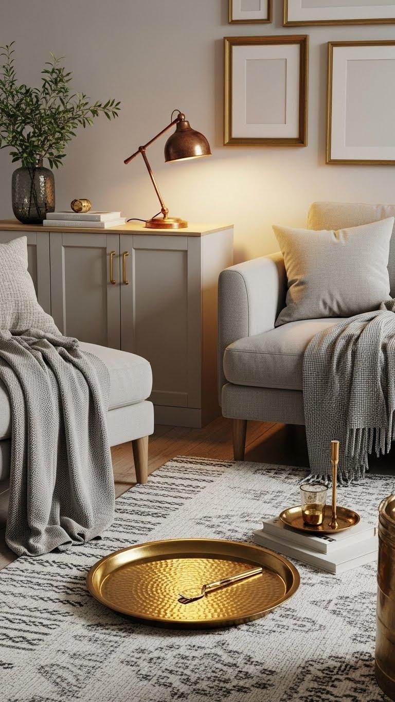 Introduce warm metals like brass, aged gold, and burnished copper to tie eclectic pieces together and lift a neutral palette without overpowering it. You’ll choose brass hardware and warm finishes to create visual rhythm; swap in hammered brass accents, an aged copper lamp, or muted gold frames. These touches feel intentional, free, and cohesive, anchoring variety without clutter.