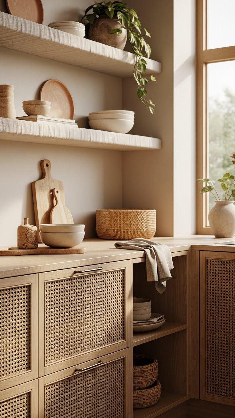 Opt for Woven Cabinet Fronts and Natural Fibers
