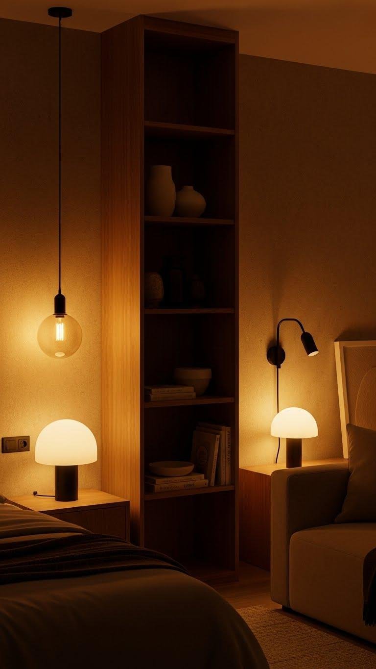 When you layer warm, ambient lighting throughout a room, it transforms surfaces and mood without shouting for attention; soft pools of light invite relaxation and highlight curated details like your open shelving vignettes.