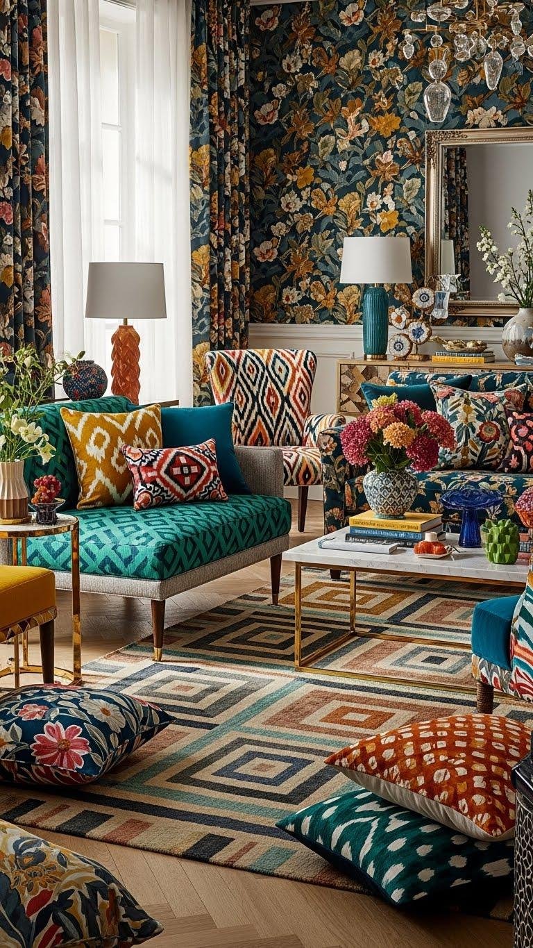 Embrace pattern with confidence: layer bold prints in varying scales and palettes so each piece complements rather than competes. You’ll use maximalist textiles to create depth—mix florals, geometrics and ikats with a practiced hand. Trust pattern juxtaposition to generate energy without chaos; balance saturated motifs with restrained grounding tones, and let your space feel liberated, intentional, and unmistakably yours.
