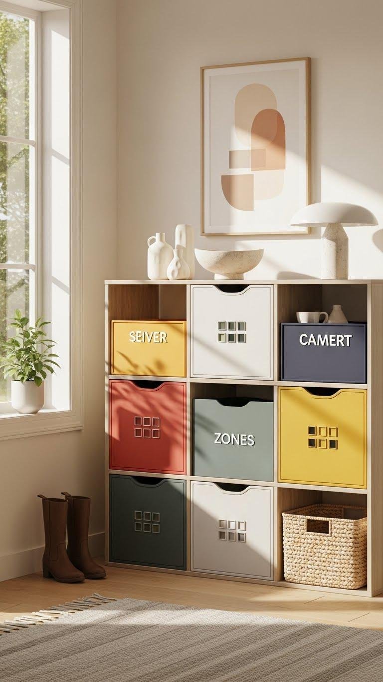 If you want entryway storage that reads like curated decor, multi-cubby units give you modular, visible organization without the cluttered look. You’ll mix modular cubbies with colorful inserts to define zones, use labeled compartments for quick freedom-from-decision, and tuck seasonal items in hidden baskets.