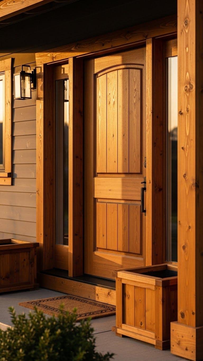 You’ll choose doors, trim, and planters that celebrate handsome grain and durable finishes.