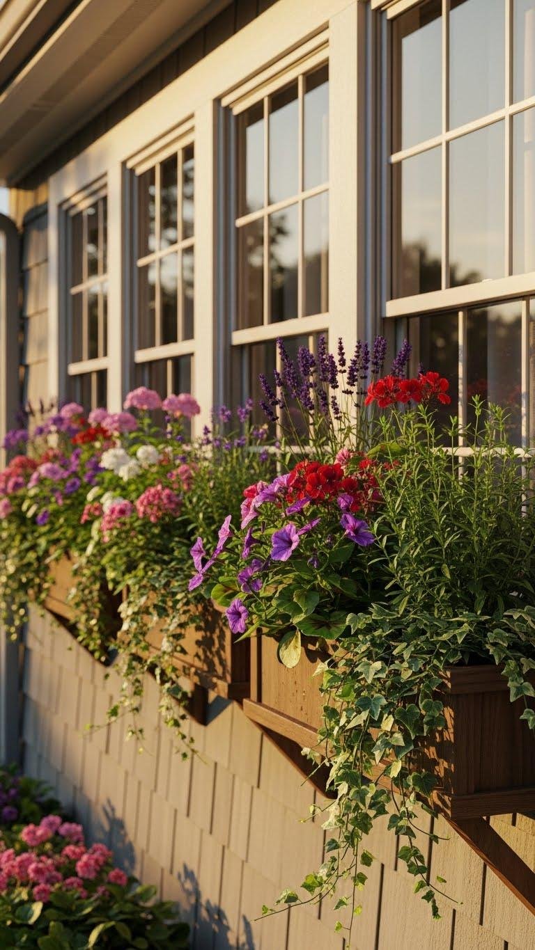 Framing your windows with overflowing boxes instantly lifts curb appeal and gives you a living splash of color that changes through the season. Choose sturdy herb planters for scent and utility, mix annuals and perennials for continuous bloom, and add cascading ivy for soft, architectural lines. Mount securely, water consistently, and rotate plantings so your facade stays fresh and free-spirited.
