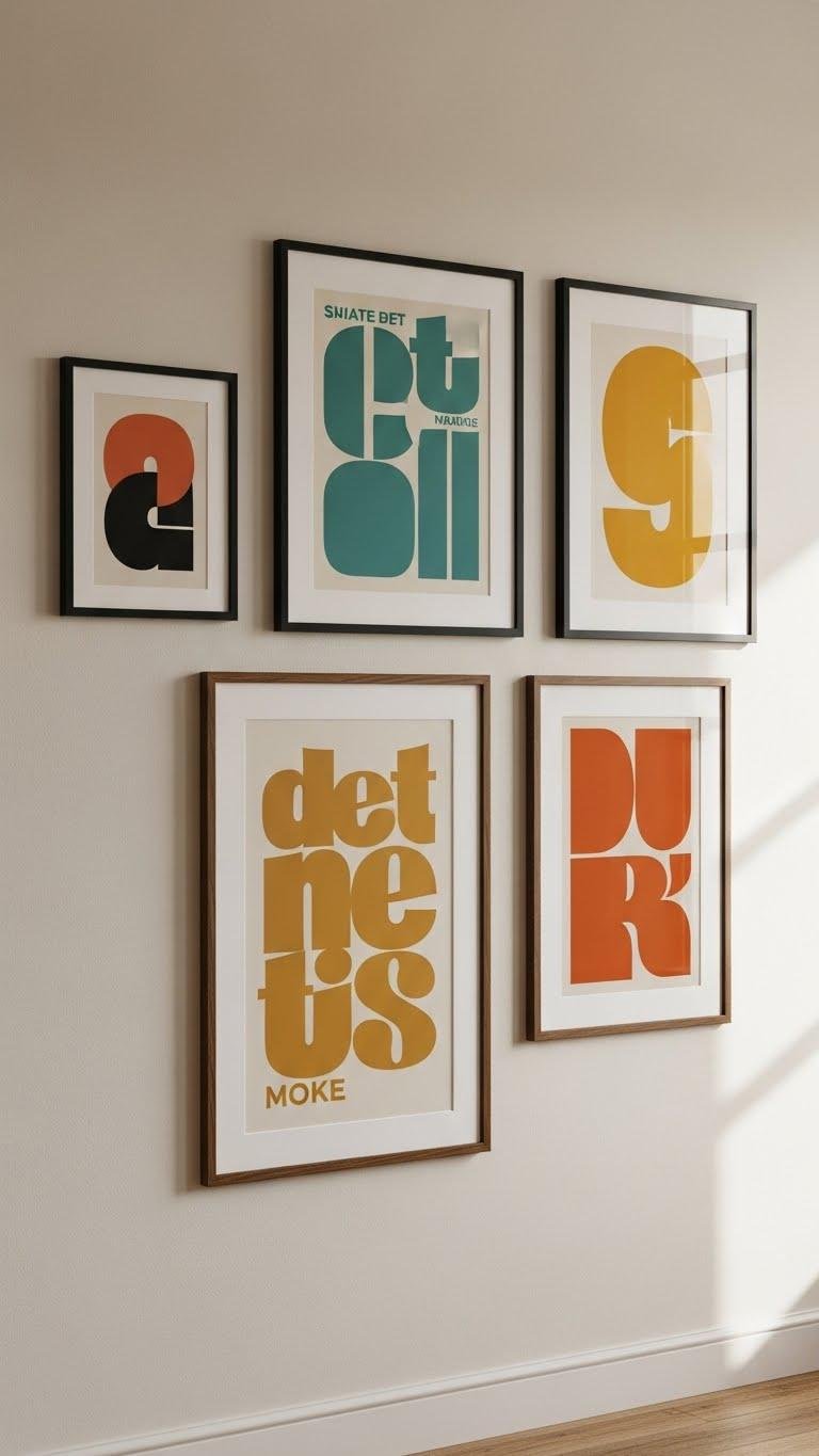 Layering textures set the tone; now let your walls pick up the conversation by curating a gallery wall with varied frames that echo that tactile richness. You’ll mix matte frames, metallics and art in an intentional asymmetrical layout that feels spontaneous.