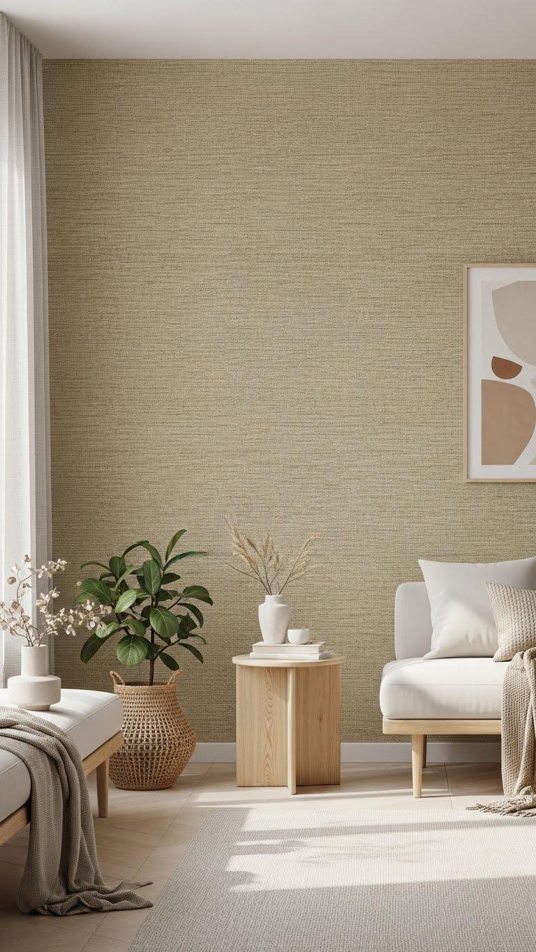 Bring textured warmth into a room by applying grasscloth wallpaper as a subtle, tactile backdrop that elevates simple furnishings without shouting for attention.