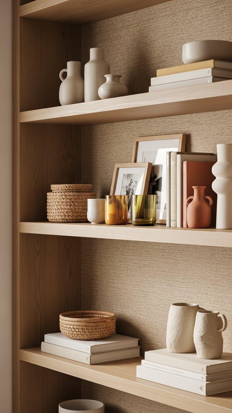 Keep freedom in mind: use rotating displays to refresh mood, pare down often, and let each shelf feel intentional and uncontrained.