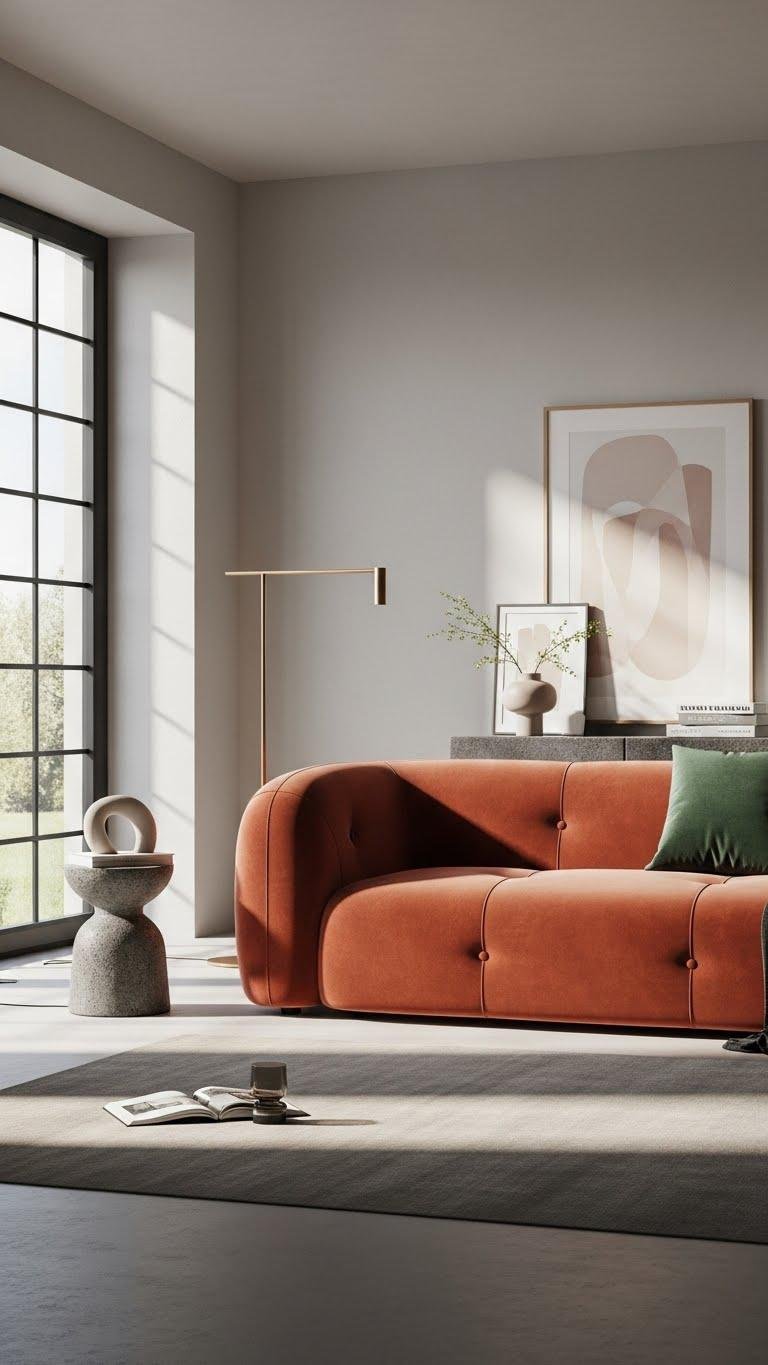 You’ll get a living room that feels curated and effortless without overdoing it — start with a sculptural sofa in velvet or bouclé, layer rugs and lighting, and place oversized art to anchor the space. Think tactile mixes (kilim, terracotta, emerald), bold ceiling lighting as sculpture, and pared-back accessories for impact. Keep flow practical, fabrics durable, and lighting dimmable — and then pick the single move that transforms the whole room.