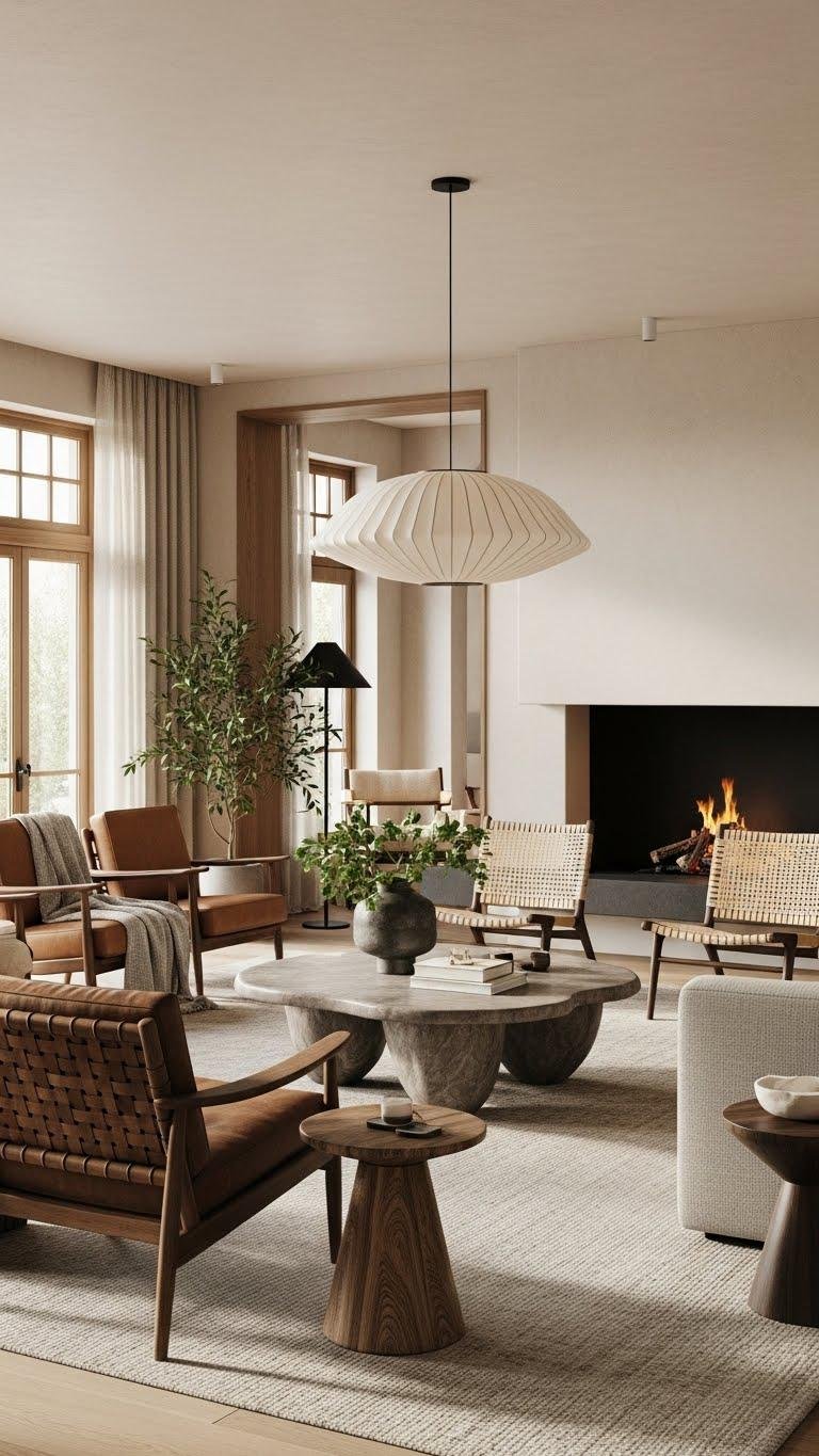 Anchor conversations around a clear focal point to give your seating arrangement purpose and pull people into real interaction. Position a bold coffee table, sculptural light, or fireplace as your conversation anchor and establish a focal hierarchy with scale, texture, and sightlines.