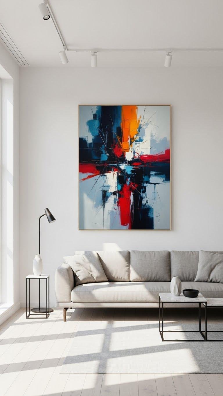 Hang one oversized artwork to instantly anchor your living room and set the tone for everything else. Choose a bold piece, center it above the sofa for confident oversized placement, and let surrounding space breathe.