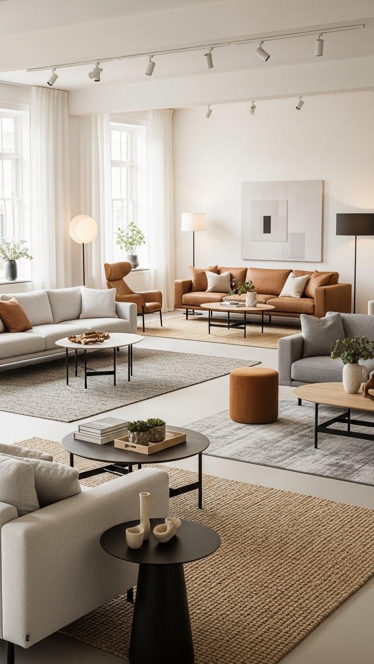 Pull seating away from the walls to create a gallery-like layout that feels intentional and airy. Float sofas and chairs to define zones, letting pathways breathe while you create conversation focal points. Use rugs and lighting to anchor pieces and balance aesthetics—mix scale, texture, and negative space. This showroom approach gives you freedom to edit, rearrange, and live stylishly without clutter.