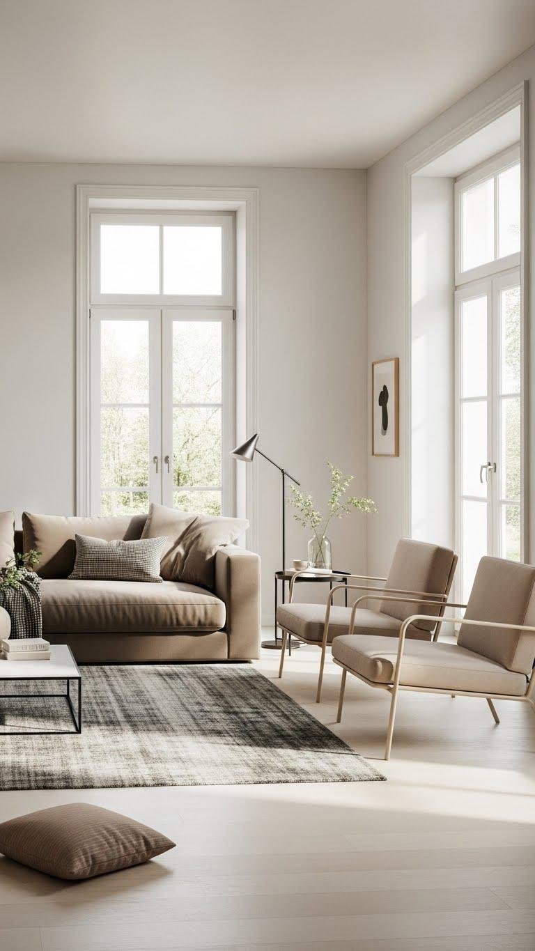 Lean into contrast: balance a generous, deep sofa with low-profile side chairs to keep the room open and layered without overwhelming sightlines.