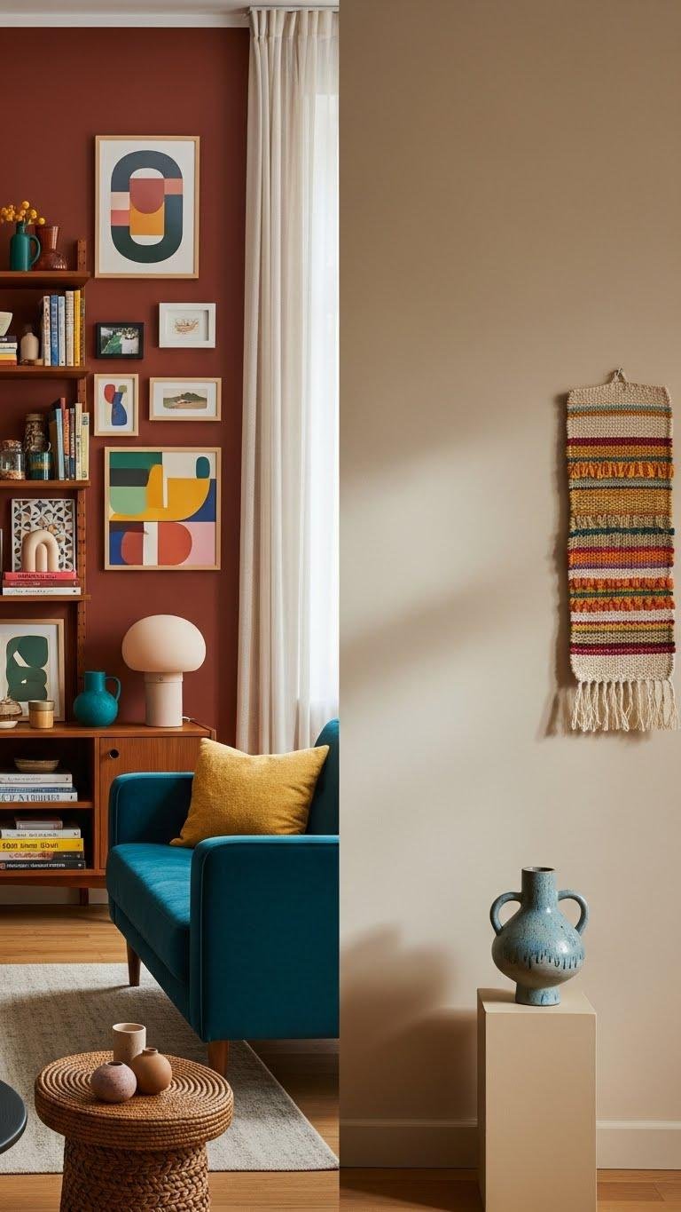 You’ll create layered texture and bold contrasts while keeping things flexible: swap pieces seasonally, reconfigure displays, and let the wall become a fearless, expressive backdrop.
