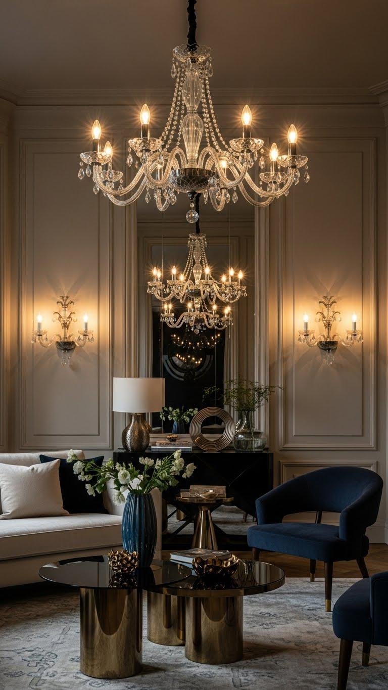 Anchor your rooms with glass chandeliers and elegant sconces to add instant refinement and layered light. You’ll choose crystal clusters for focal drama and pair them with vintage sconces to mix glamour and character. Mount sconces at eye level, dim chandeliers for mood, and balance scale with furniture. This lets you craft a liberated, high-end atmosphere that feels intentional and effortlessly chic.