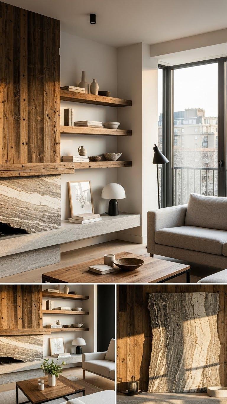 Because reclaimed wood and natural stone carry history and texture, they instantly ground a modern apartment with warmth and authenticity.