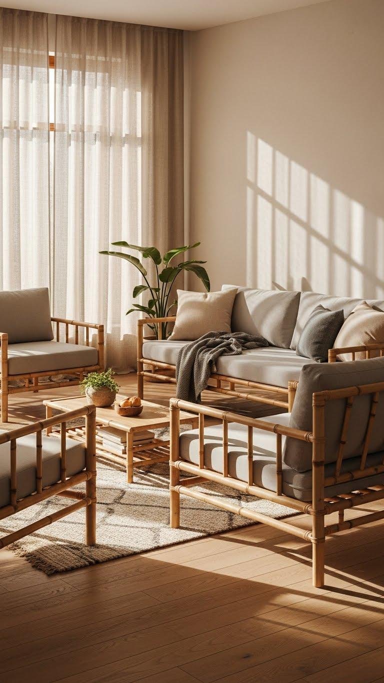 When you choose bamboo and Japandi-inspired pieces, you get furniture that balances minimalist Japanese restraint with warm Scandinavian functionality—clean profiles, natural finishes, and thoughtful joinery that feel both modern and lived-in. You’ll favor bamboo joinery for strength and subtle detail, pair muted woods with japandi textiles for texture, and arrange airy layouts that free movement, calm the mind, and elevate daily life.