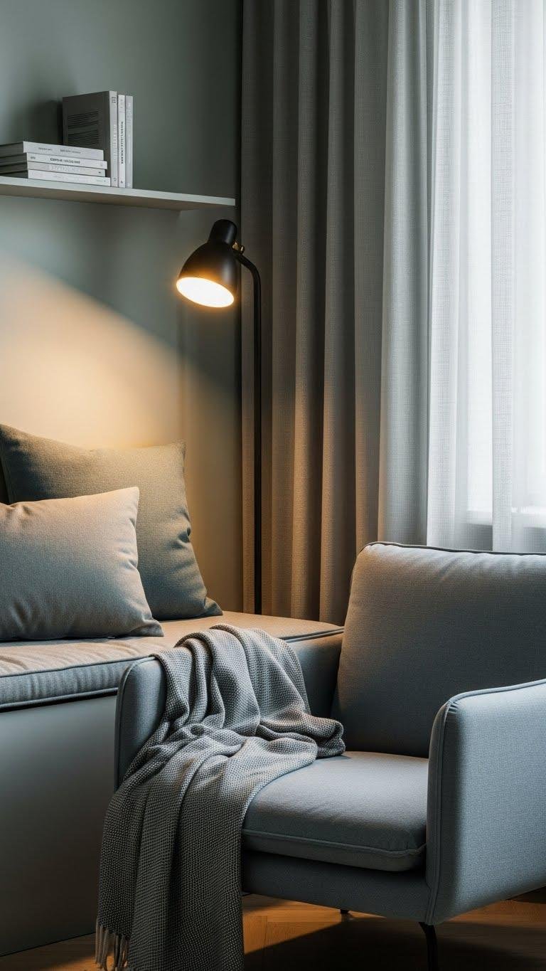 If muted greens and blues have quietly warmed your bedding, create a small corner that invites lingering with a good book. Tuck a cushioned window seat or a comfy chair, add a soft throw, and position a warm floor lamp for focused light. Keep surfaces clear, add a slim shelf for favorites, and choose breathable fabrics so you can read, pause, and feel free.