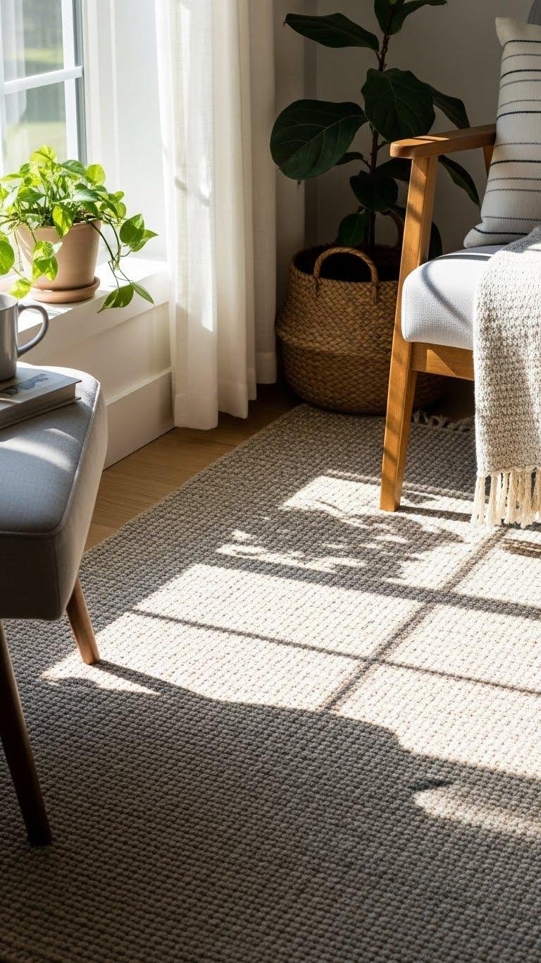 Choose low pile, natural fibers and a muted pattern to maintain visual ease and a sense of freedom. The rug feels sensory friendly, defines zones, and provides subtle acoustic benefit so your space stays quiet and uncluttered.