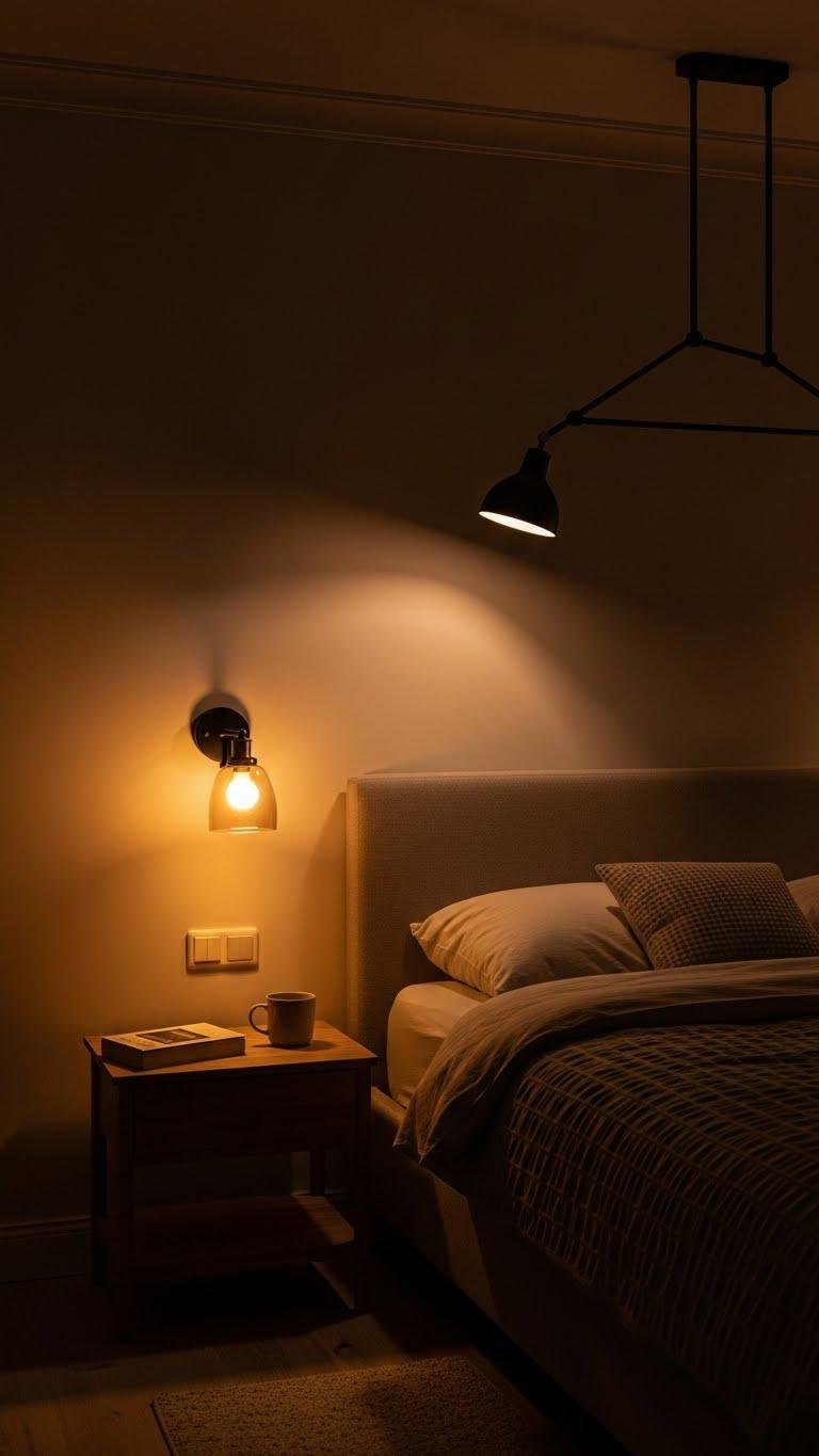 Often a room feels finished the moment you balance its light — matching lamps, paired sconces, or mirrored pendants give your bedroom a calm, intentional symmetry that immediately soothes the eye.