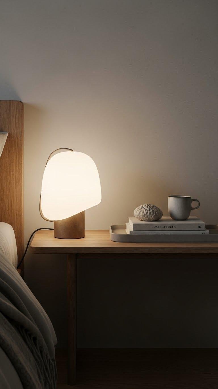 Choose a low-profile lamp, a slim tray for essentials, and one tactile object that invites touch.