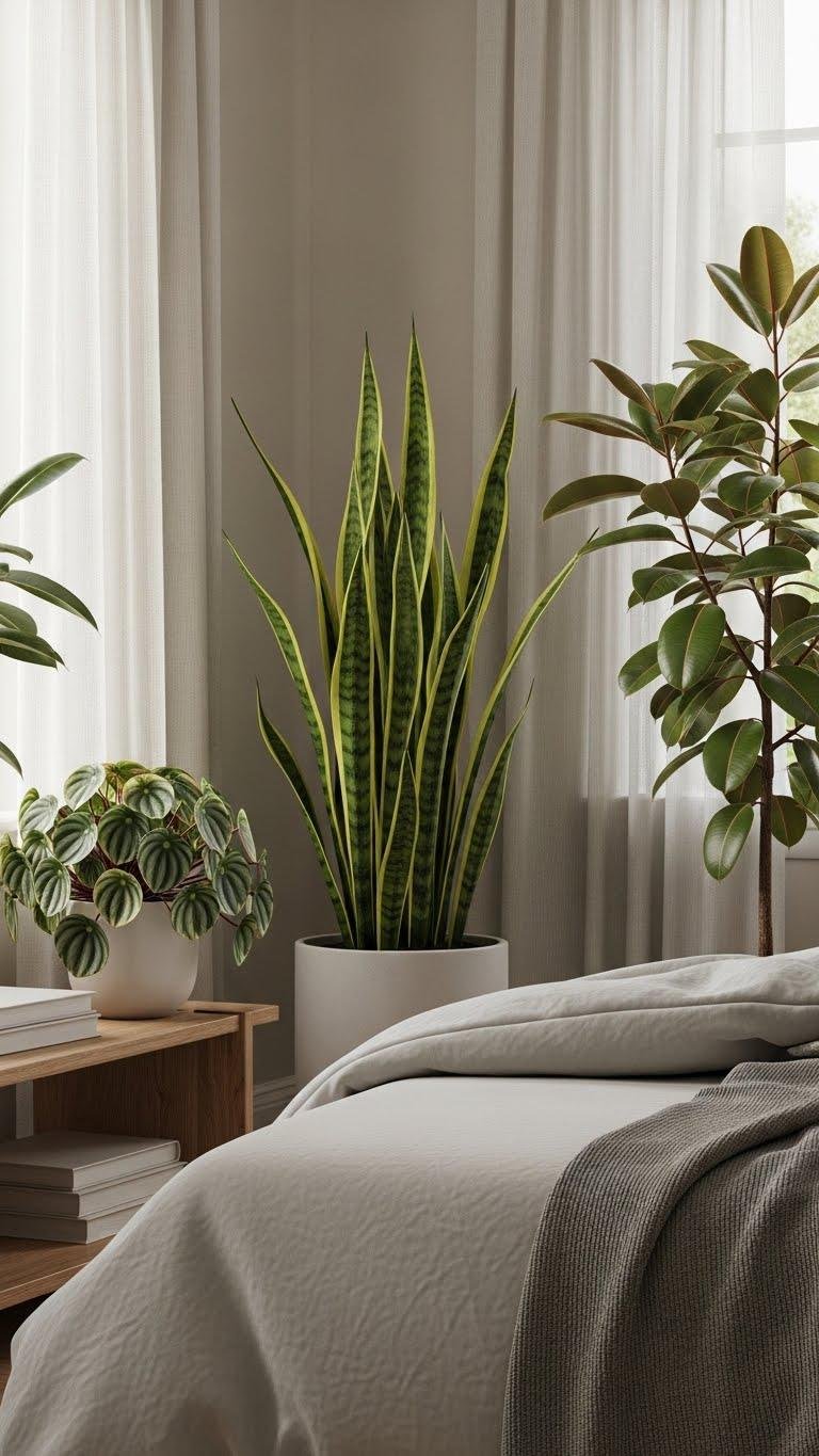 You’ll place a glossy snakeplant in a corner, add a variegated peperomia on a low shelf, and enjoy low-maintenance greenery that frees your space and mind.