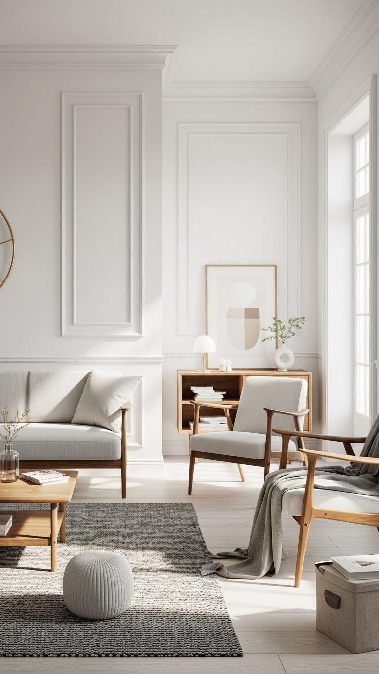 Choose layered neutrals, crisp silhouettes, and minimal contrast so the space feels open, intentional, and liberated.