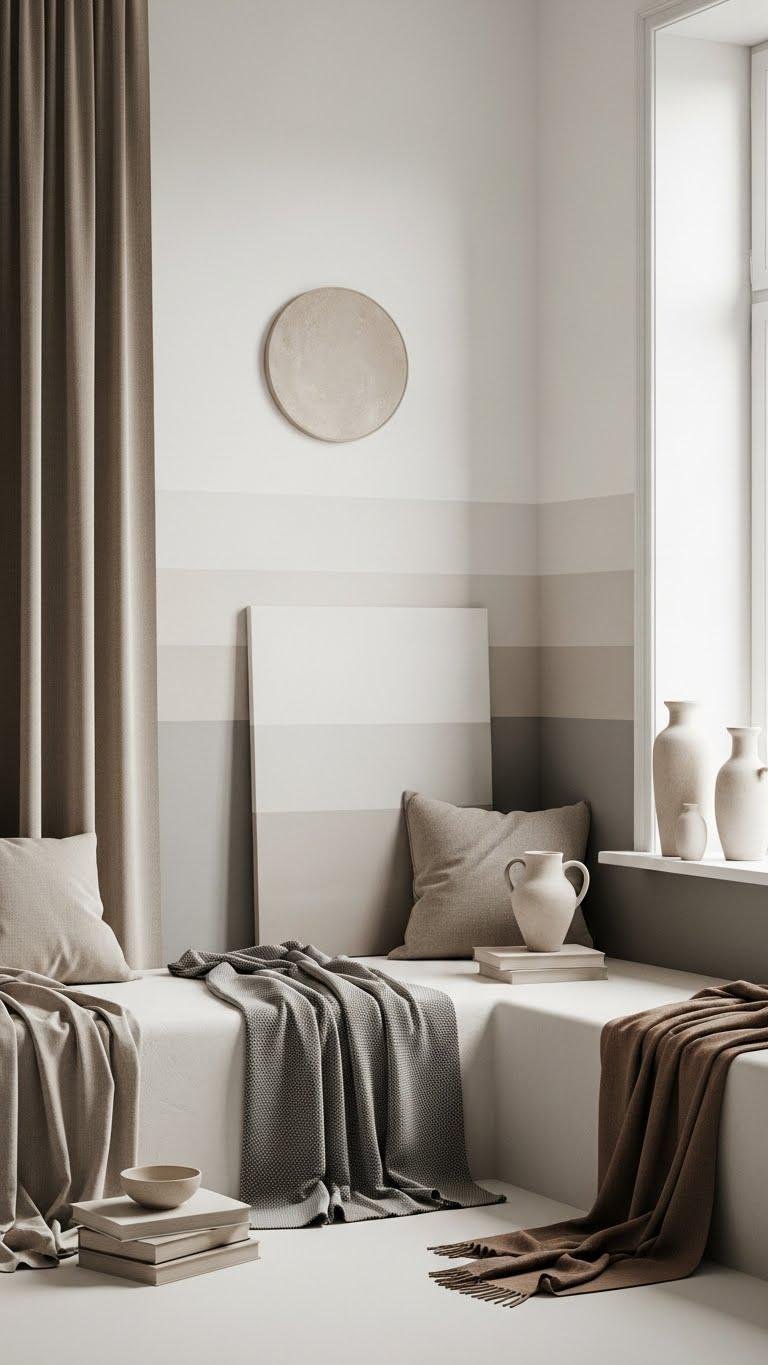 You’ll use tonal layering to build a muted gradient across walls, textiles, and accessories, letting texture and contrast define spaces.