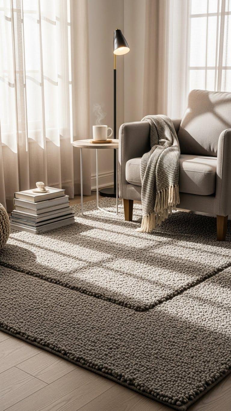Often you’ll find a plush rug instantly transforms a blank corner into an inviting pause — pick a dense pile in a neutral or muted tone to anchor seating, define a reading nook, or soften a hard floor without overpowering surrounding textures. You’ll use floor layering to add depth, choosing durable, low-maintenance fibers and scaled accessories that keep the corner relaxed, purposeful, and effortlessly yours.