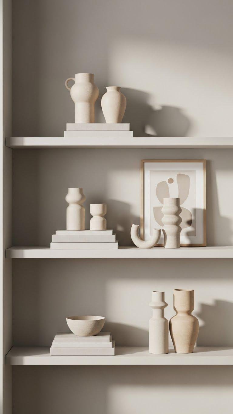 You’ll choose matte ceramics for quiet, tactile presence and glazed forms for reflective contrast. Place pieces sparingly, vary scale, and let negative space amplify each silhouette so your neutral scheme breathes freely.