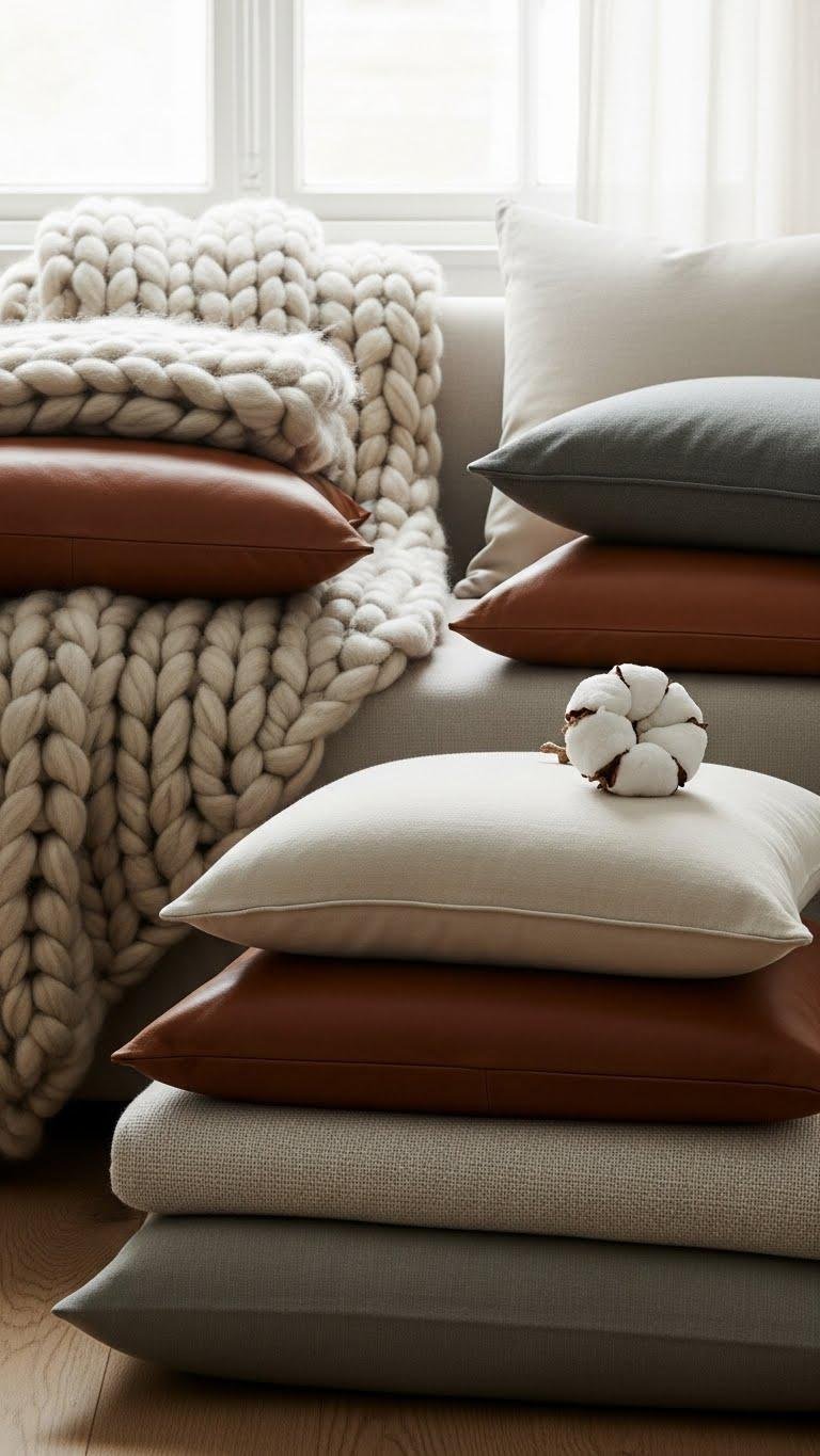 Layer in wool, leather, and cotton to create a neutral scheme that reads as calm but never flat; each material brings a distinct hand and visual weight you can use like paint. You’ll employ wool layering for warmth and scale, leather accents for edge and longevity, and breathable cotton for ease.