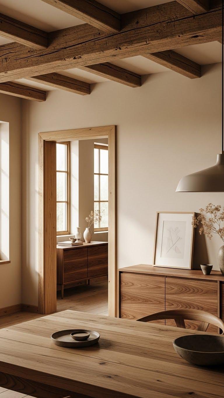 You’ll mix raw timber tables, reclaimed beams for character, and walnut accents to elevate modern restraint.