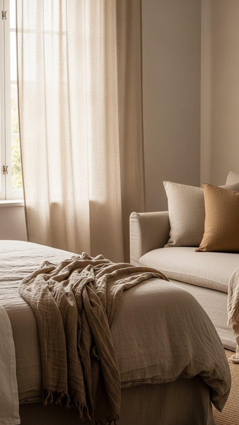 Texture makes a neutral room feel intentional, so layer soft linen textiles to add subtle warmth and effortless polish.