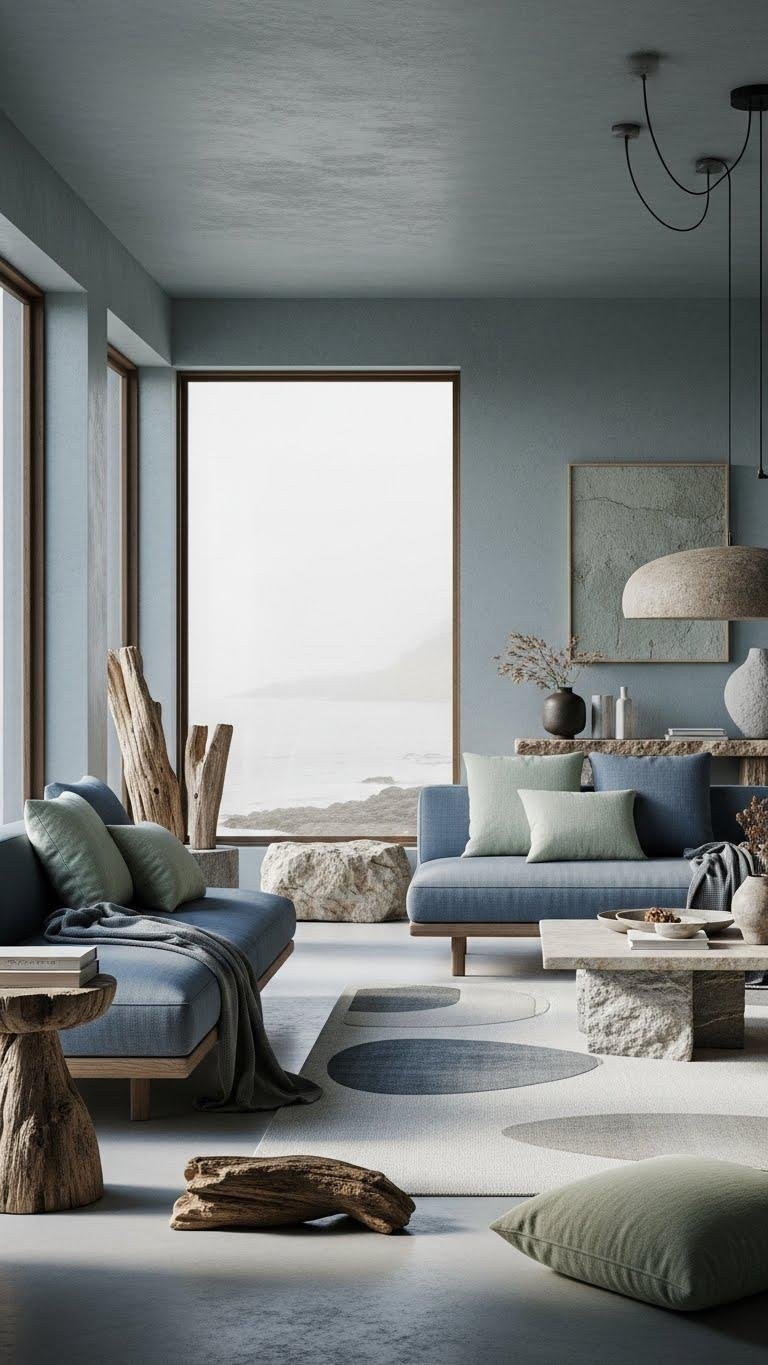 When you want color that calms without disappearing, opt for muted mineral blues and misty greens that read as sophisticated neutrals; they bring depth and a coastal-meets-stone sensibility without dominating the room.
