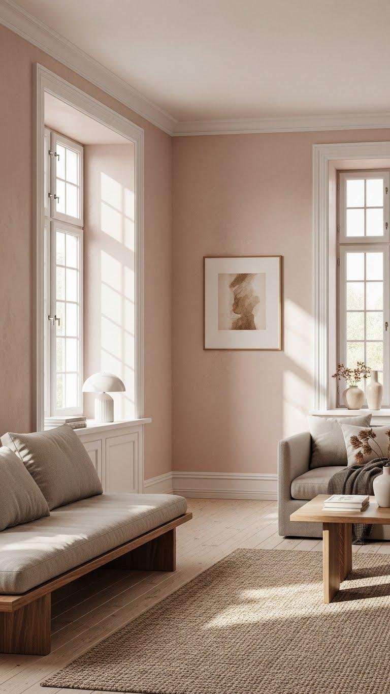 You can make soft pink neutrals feel modern and warm without leaning saccharine or fussy. Start with plaster-pink walls or a Dead Salmon accent, then layer warm whites, sandy beiges, and matte brass details. Think linen sofas, cognac leather, faded-rose rugs and textured ceramics for a lived-in elegance. Below are 25 practical ideas to help you build that calm, stylish palette—each one simple to try and easy to adapt.