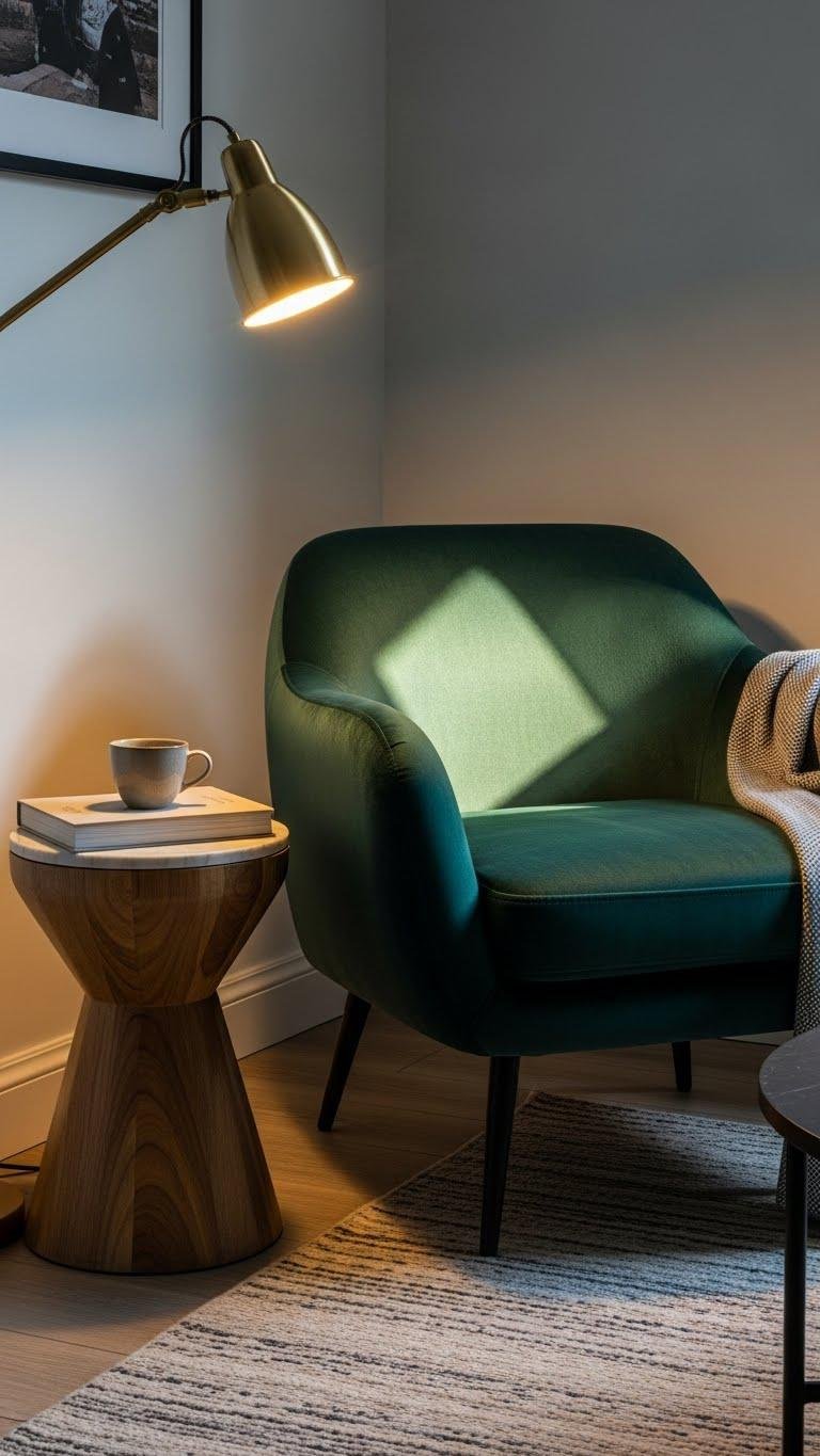 Choose a saturated hue that celebrates bold freedom, pair with a sculpted side table, and position a focused reading lamp.