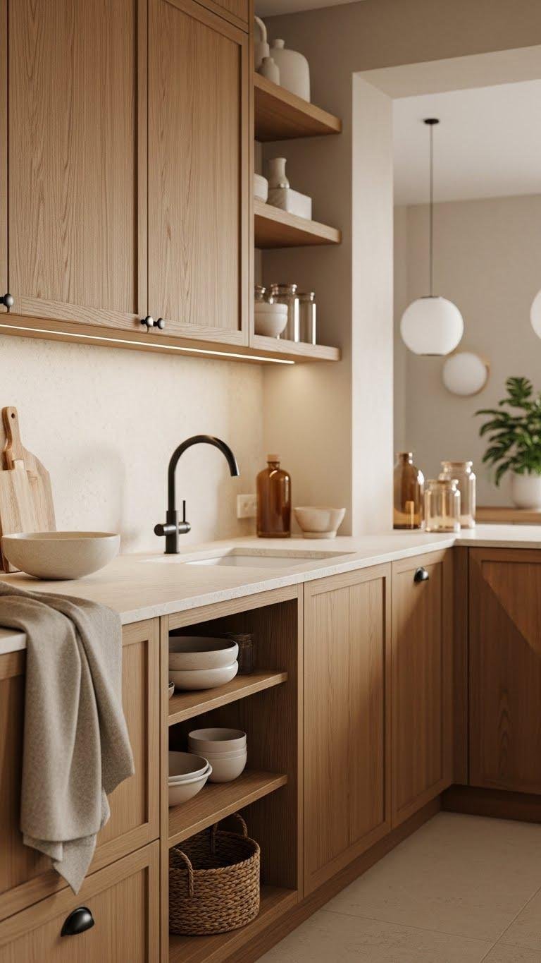 Warm-neutral kitchens with natural wood cabinets strike a timeless balance between comfort and contemporary style, so you’ll feel both grounded and refreshed every time you walk in.