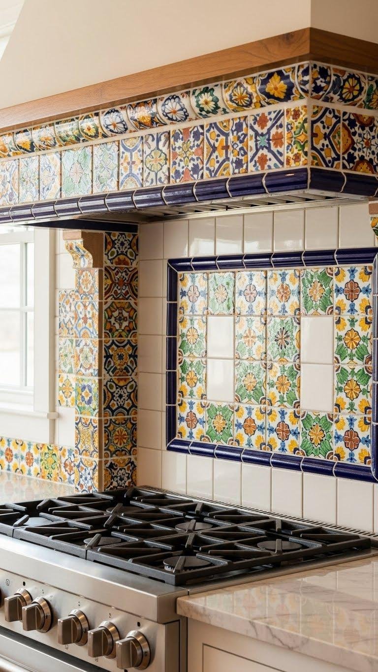 Bring in bold color and artisanal charm with a Mexican tile backsplash that instantly elevates your kitchen’s personality. You’ll mix colorful encaustic tiles and geometric talavera motifs to create rhythmic, handcrafted patterns that feel liberating. Choose a repeating layout or an accent field above the range, balance vivid hues with neutral counters, and let texture and symmetry deliver a confident, modern heritage statement.