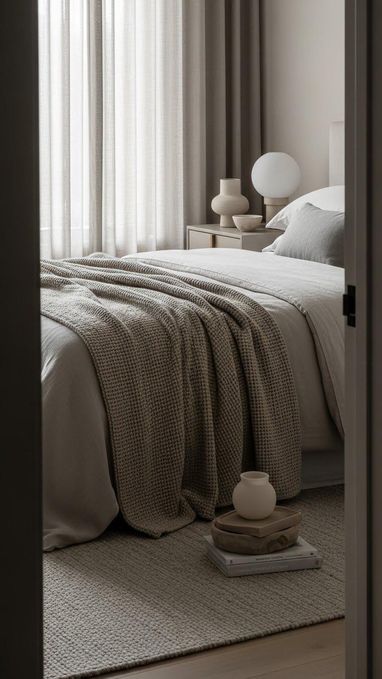 When you layer tactile neutrals—think bouclé throws, linen sheers, and a low-pile wool rug—your bedroom becomes a calm, textural retreat that still feels modern and curated. You’ll embrace plush layering with muted palettes, mixing matte ceramics, brushed brass accents, and neutral textures in varying scales. The result feels liberated, intentional, and quietly luxurious without excess.